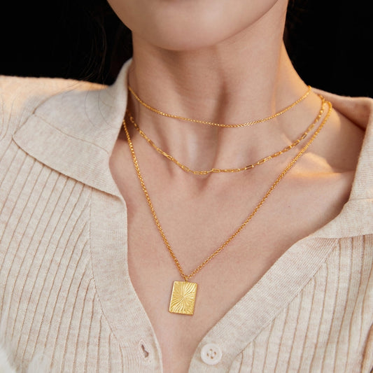 Vintage Gold Square Pendant Necklace
