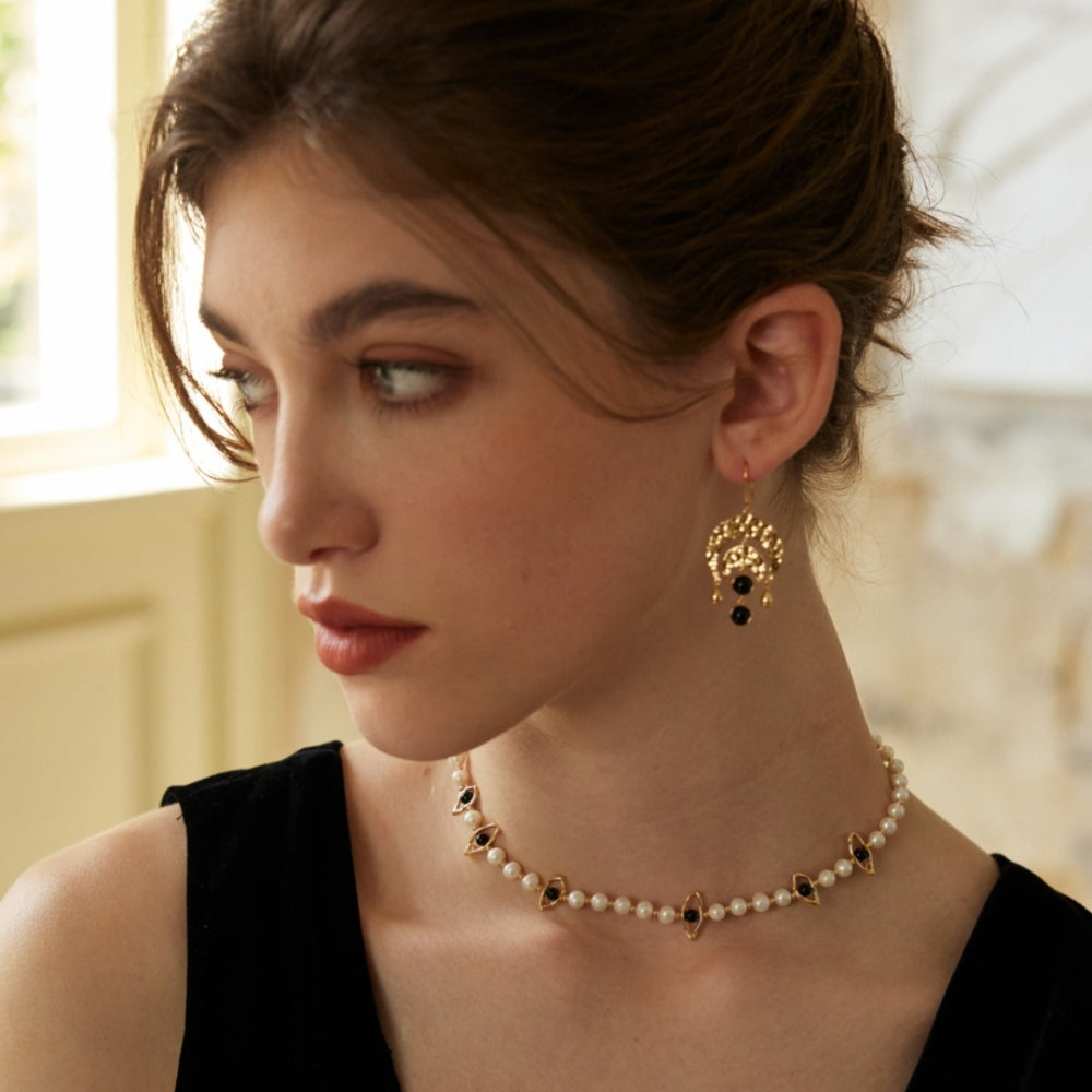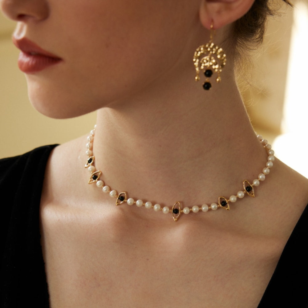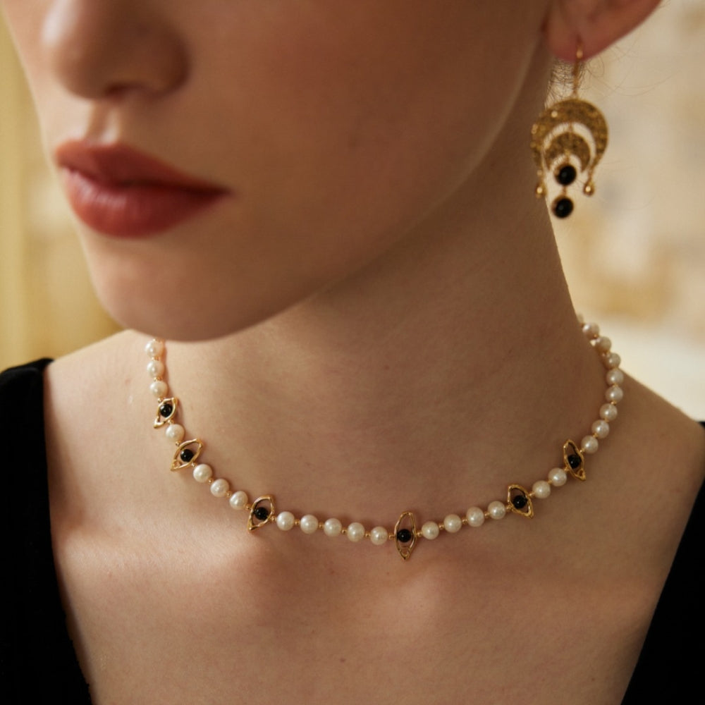 Material: 925 Sterling Silver, Black Onyx, Natural Pearl