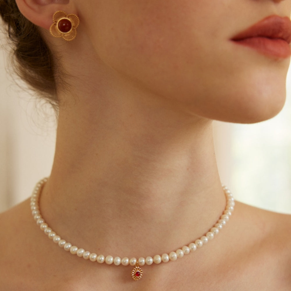 Material: 925 Sterling Silver, Natural Pearl, Agate